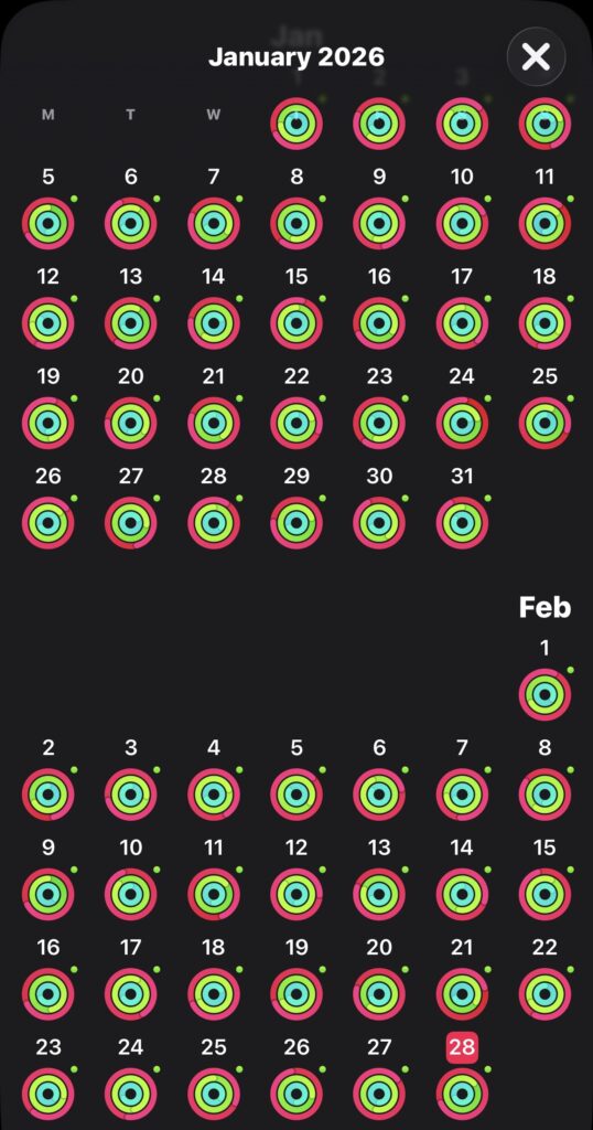 59 days in 2026 so far and all of them have workout rings completed. Let’s keep this going throughout the year.